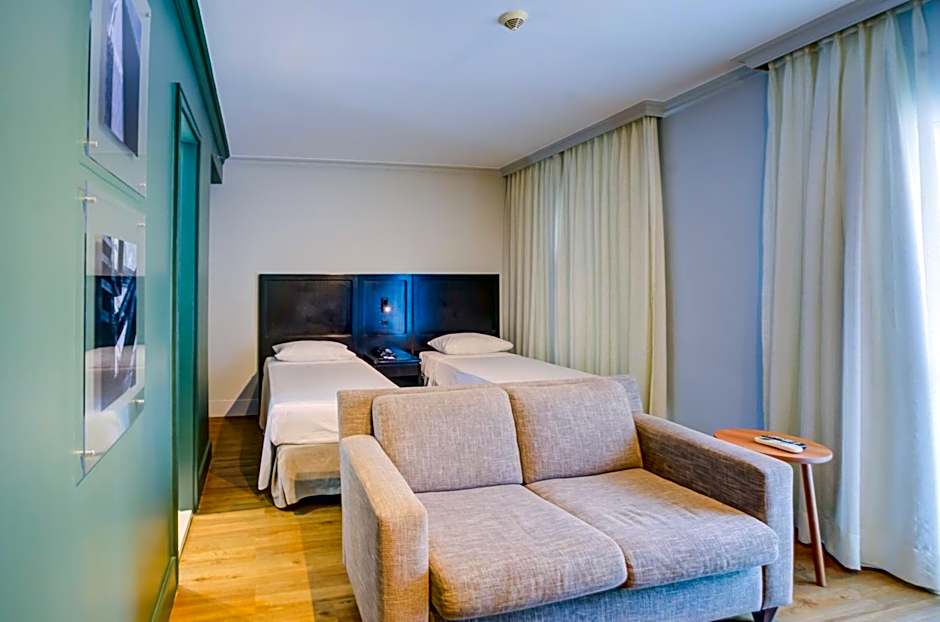 Our Standard Double Room is a spacious and comfortable option, perfect for 2 adults and 1 child. With a private bathroom, kitchenette, balcony, and a host of amenities including a flat-screen TV and air conditioning, you'll feel right at home during your stay. Rest and relax in style in our cozy room with a double bed.